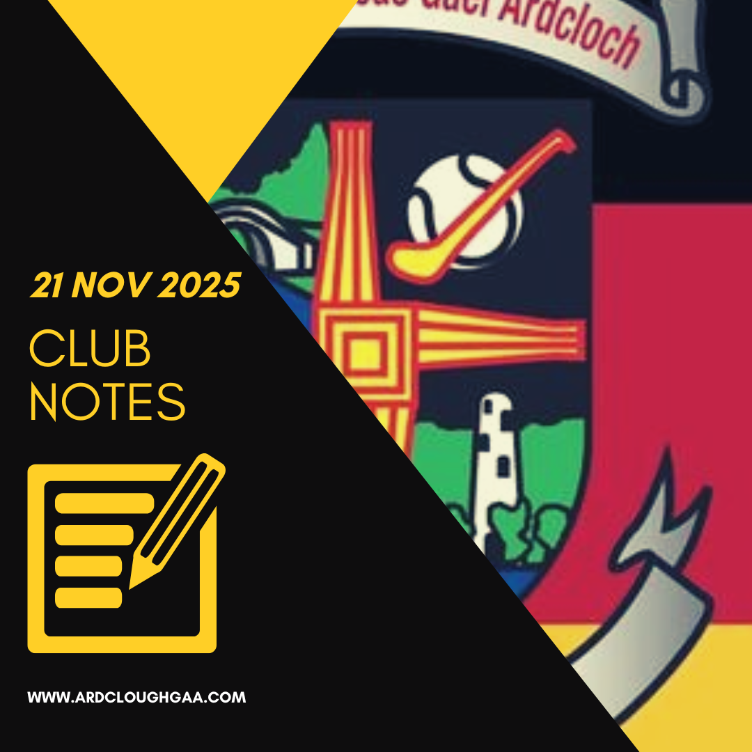 If you would like an item included in our Club Notes please email secretary.ardclough.kildare@gaa.ie and we will include it.