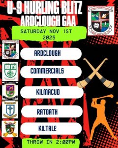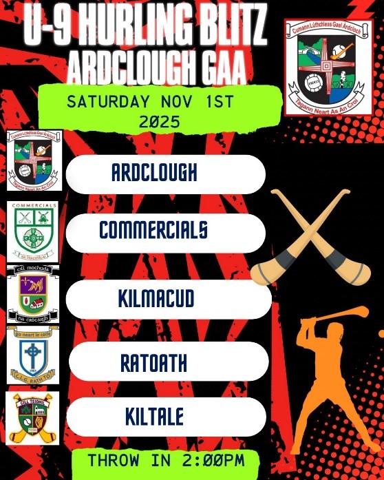 Best of luck to our U9 hurlers hosting a blitz on Saturday at 2pm with Kilmacud Crokes, Ratoath, Kiltale and Commercials participating.