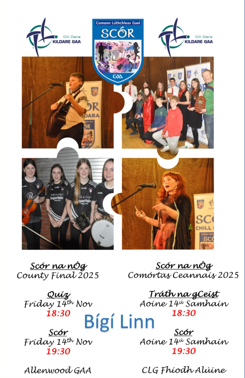 Big day next week for our Scór participants, with their county finals taking place next Friday in Allenwood. Best of luck everyone, we know you have put huge work into your performances and we’re really excited for you.